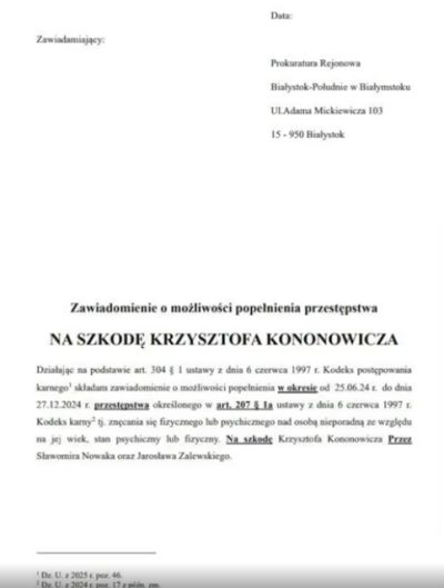 Kto złożył zawiadomienie: