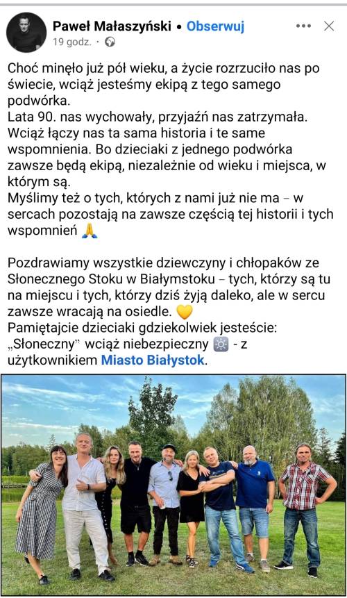 Paweł Małaszyński, ten polski aktor teatralny, telewizyjny i filmowy, wokalista, muzyk i konferansjer, w okolicach 31 sierpnia 2025 opublikował na swoim profilu na Facebooku zdjęcie z częścią ekipy ze swojego podwórka, co społeczność na wykopie uznała za swego rodzaju reunion70), czyli spotkanie z ludźmi z klasy, zjazd absolwentów.