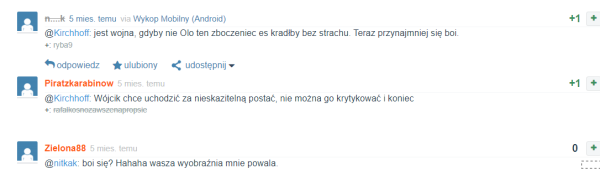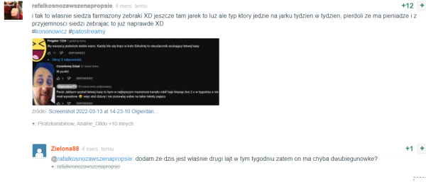 W komentarzach pod tym postem Konrad Kawula zapytał w eter, czy tak samo postąpiła w stosunku do konta @bezpravkano, które z dużą pewnością obserwatorów Uniwersum należy do Bogumiła Storcha. Odpowiedziała twierdząco .