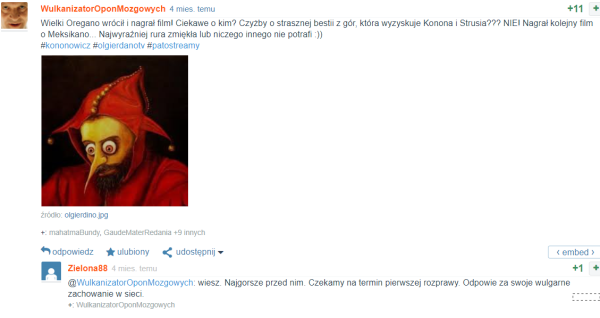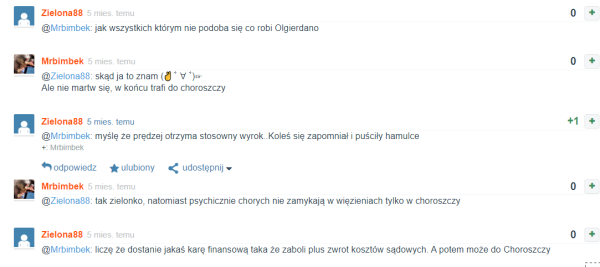 Mariola udzielała się także we wpisach uderzających w Olgierdano, który od początku miał zwolenników, ale również i wrogów. Podejrzewała go nawet o dwubiegunowość i ironizowała, że „szykował coś mocnego, kto ma wiedzieć, ten wie ”.