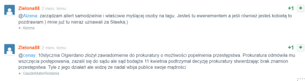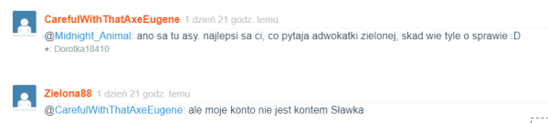 W pewnym momencie konto @Zielona88 zaczęło jeszcze wyraźniej sugerować ścisłe powiązania ze Sławomirem. Liczyło także na wygranie sprawy z Olgierdano i zaprzeczało temu , by Es się czegokolwiek bał lub by paliła mu się dupa . Wpisy również wskazywały na to, że włascicielka konta w jakimś zakresie posiadała wiedzę prawniczą , co zwróciło uwagę innych użytkowników wykopu. Zastanawiające było, kiedy Mariola Zielona88 skończyła te studia prawnicze oraz w jaki sposób liczyć to wszystko w latach, bo nic się nie kleiło.