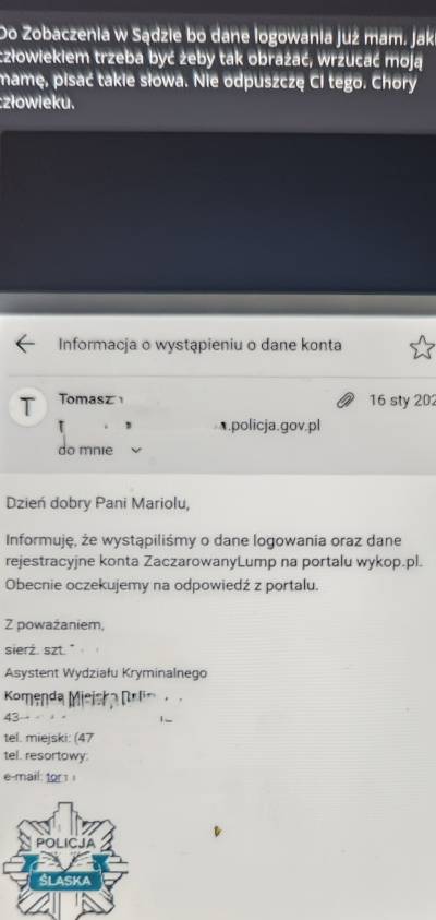 20 października 2025 roku Mariola napisała do Bogumiła Storcha, że „nie będzie nigdzie zeznawał, bo sprawa będzie umorzona”, nazywając go „mendą”, a on ją potem zablokował. Screeny nie zostały opublikowane w całości.
