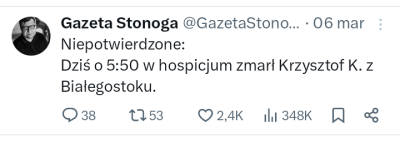 Od 15.03.25 zarówno na grobie Kononowicza jak i na ogrodzeniu przed domkiem drewnianym ktoś zamieścił informację stylizowaną na nekrolog. Treść była następująca: